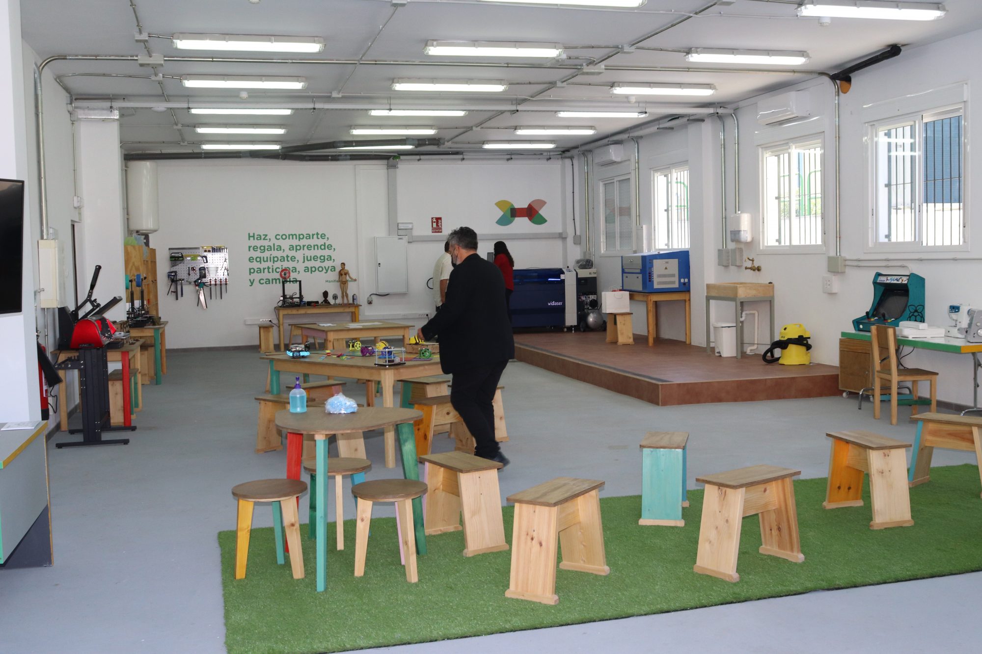 Localizado en una antigua lavandería. El edificio es enorme y está muy bien distribuido. Cuenta con un Espacio Fabricar de alrededor de 300m2 con acceso al exterior a través de un gran portón metálico, por lo que es ideal para trabajos grandes (escultura, pintura, automoción…). Además en la planta superior del edificio cuenta con un espacio de coworking excepcional. Recién inaugurado y listo para ser utilizado.