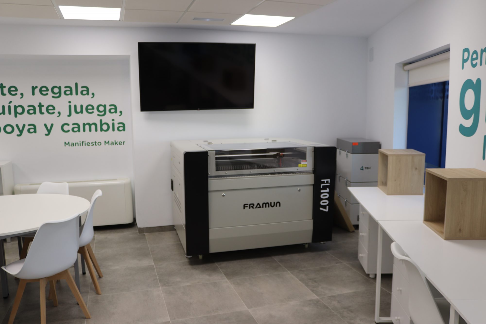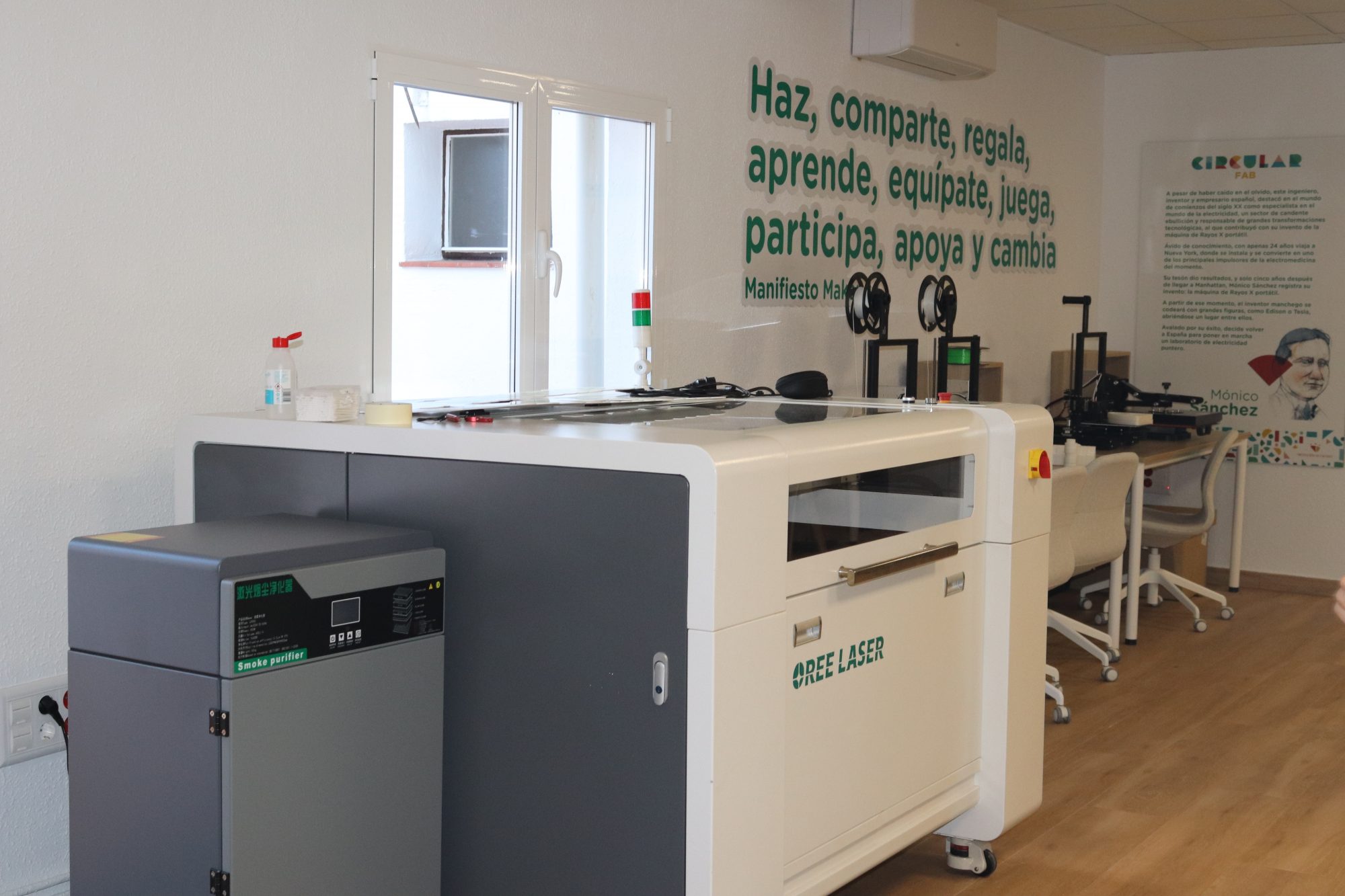 - Cortadora láser de 120W, con base de corte de 800x900mm regulable en altura.