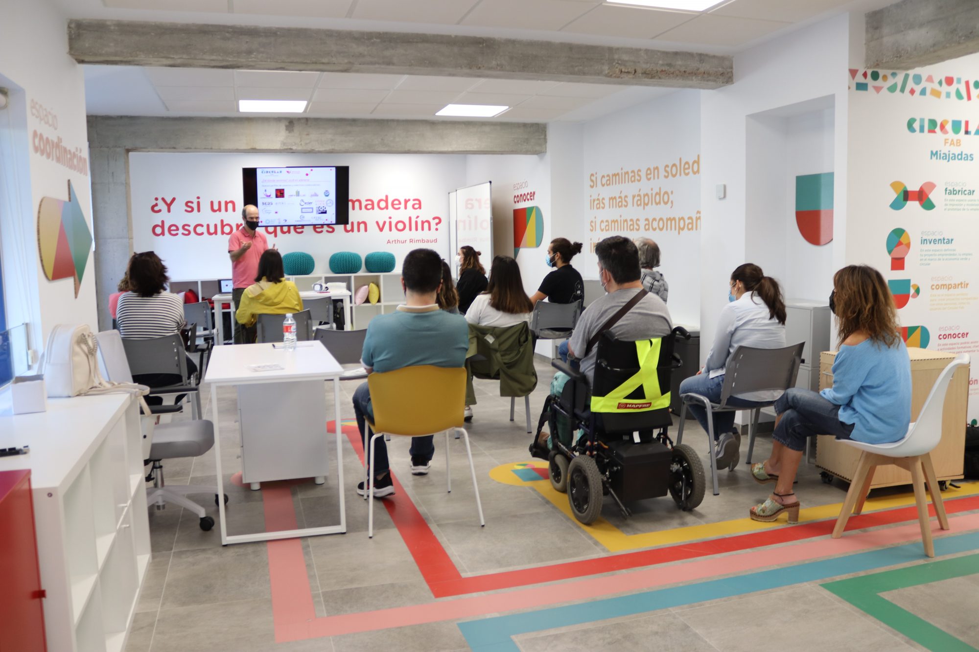 Las visitas que hemos realizado han sido muy agradables, ya que hemos vuelto a comprobar la riqueza cultural y la variedad de inquietudes que se encuentra en cada rincón de la región. A las presentaciones que hemos impartido se han acercado personas de muy diversos ámbitos y edades: creativos digitales expertos en diseño gráfico o diseño 3D; amas de casa que llevan años haciendo pequeños trabajos de costura o manualidades; empresarios con inquietud y curiosidad por ampliar sus negocios; estudiantes a punto de acabar sus estudios y con ganas de quedarse en su ciudad natal; madres y padres de las AMPAS de centros de enseñanza con ganas de innovar; gente con ideas que compartimos y con ganas de emprender en “lo verde y circular”…
