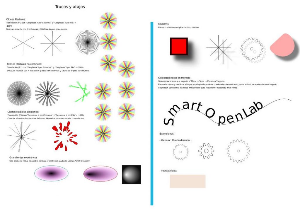 En el caso de Inkscape, permite diseñar desde formas geométricas sencillas, hasta diseños multicapas con formas aleatorias o patrones. Además es particularmente agradable su capacidad para abrir “casi cualquier” formato y salvar los ficheros en “casi cualquier” otro.