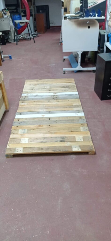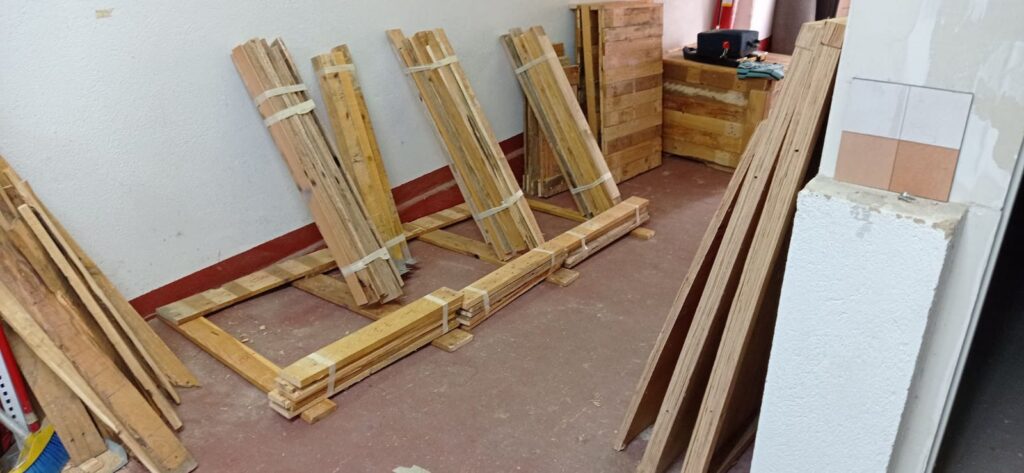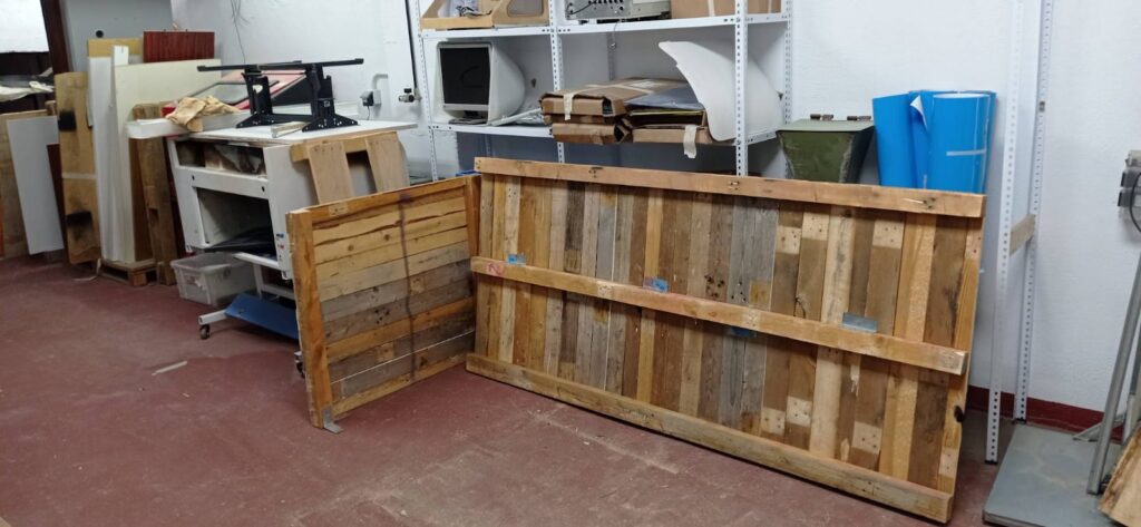 - Seleccionar los palets y las tablas que estén en mejor estado para la fabricación de la compostera. Evitar coger palets que estén rotos, deteriorados, húmedos, quemados o de distintos grosores.