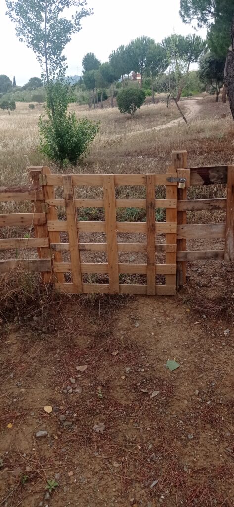 - También se ha instalado una puerta abatible de 1000 de ancho x 1000 de alto para entrar y salir del recinto. El montaje de la valla y el montaje de la puerta son parecidos.