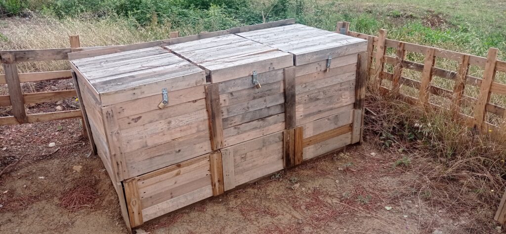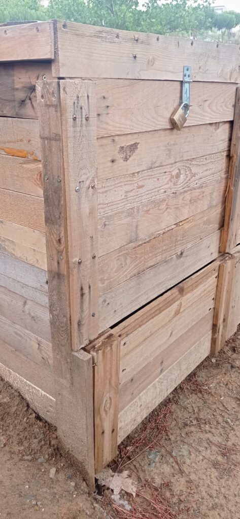 - Reforzar las esquinas de las composteras por dentro y por fuera con tablas para evitar que en un futuro se rompa por ese punto.