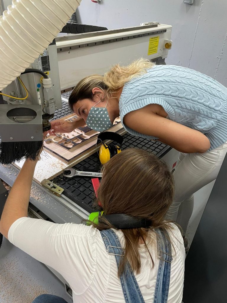 Durante la primavera de 2021 hemos acogido un interesante curso de introducción a la fabricación digital con fresadora CNC y corte láser para alumnado graduado en Arquitectura e Ingeniería Civil. Sus profesores Pablo Cruz, Adela Rueda Márquez y Juan Saumell, del área de Expresión Gráfica de la Universidad de Extremadura, en la Escuela Politécnica de Cáceres, deseaban enseñar ese mundo de posibilidades a sus alumnos y contaron con nosotros para ello.