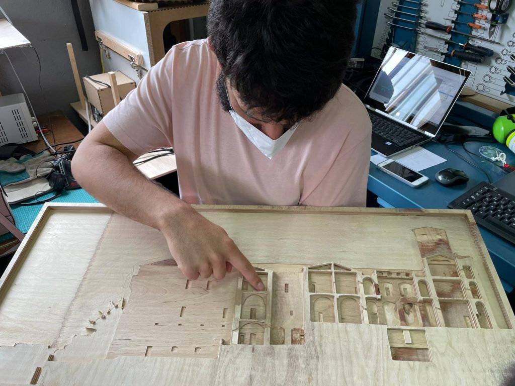 El alumnado ya contaba con una buena formación en modelado BIM vectorial y disponían de los modelos 3D de muchos edificios emblemáticos del casco antiguo de Cáceres. Durante el desarrollo del curso han aprendido técnicas de programación de maquinaria para plasmar sus modelos en maquetas físicas. Han descubierto las dificultades de pasar del mundo 3D ideal, al mundo físico real. Problemas con las escalas, imperfecciones del material, programaciones inadecuadas… Lo ideal para arrancar.