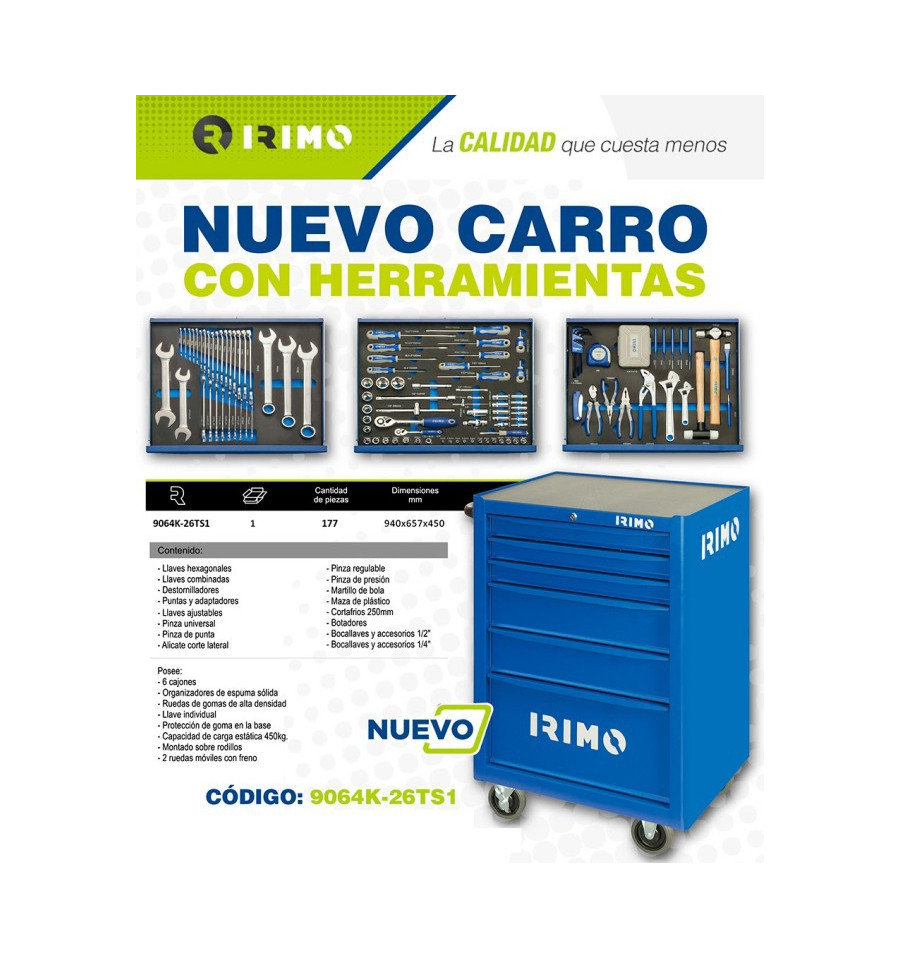Carro metálico robusto con herramientas con 6 cajones.