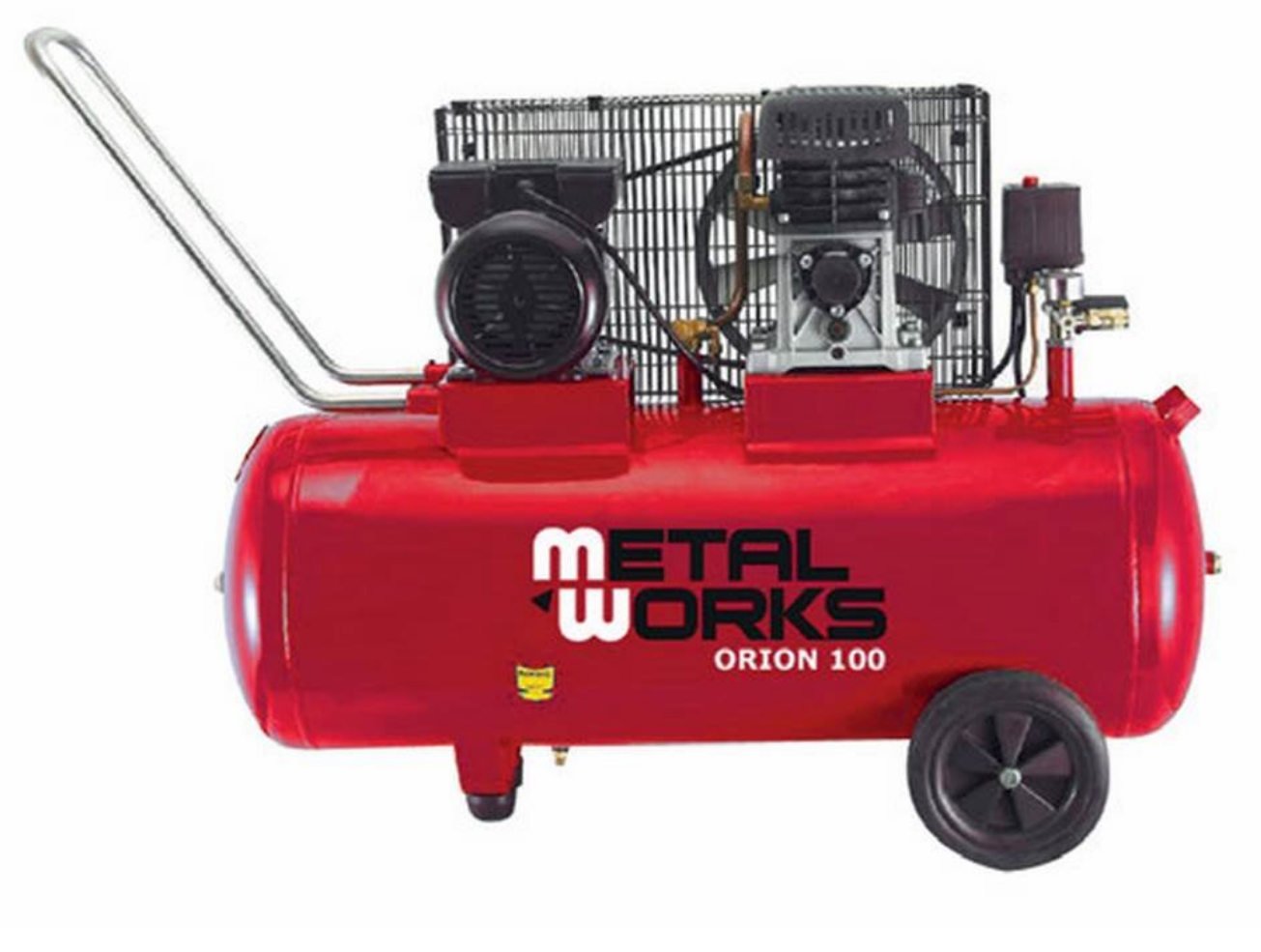 Compresor de motor monofásico con una capacidad de depósito de 100 litros y una presión máxima de 8 bares.