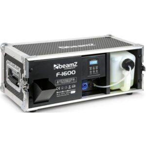 Control por DMX (2 CH) o autonomo, incluye ventilador para mejor dispersion de la niebla con angulo de salida ajustable. alojamiento para liquido 3Lts. Montado en flight case. Humo por minuto 350m3. Usa liquido de humo standard, 15,/8Kg.