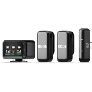 Incluye un estuche de carga que extiende la autonomía del sistema, ofreciendo hasta 7 horas de uso continuo por unidad. El receptor USB-C para smartphones proporciona una conexión directa, mientras que la compatibilidad con Bluetooth y la aplicación RØDE Capture permiten controlar y grabar desde dispositivos iOS y Android. Su diseño ultraligero y discreto lo hace ideal para uso en cámara, y los paravientos integrados (con opción de paravientos de pelo sintético) aseguran grabaciones limpias incluso en exteriores.