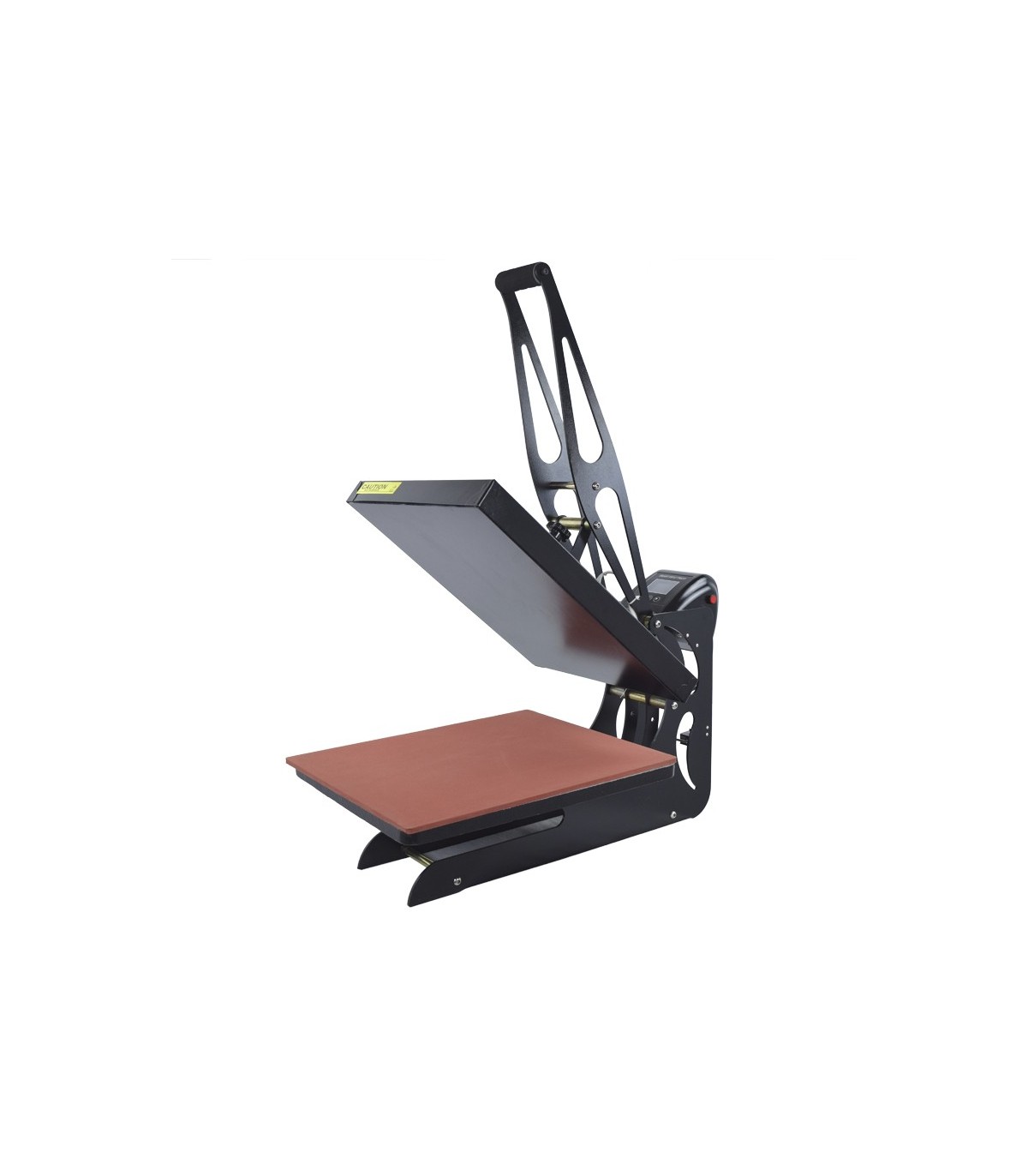 Prensa térmica tipo sandwich, que puedes utilizar para las diferentes técnicas de personalización de prendas que existen en el mercado; impresión digital, sublimación, pedrería, transfer con papel, vinilo textil, aplicación de escudos y emblemas bordados. Indispensable para trabajos en grandes superficies y planas como textiles, plásticos, metales, maderas, vidrio…