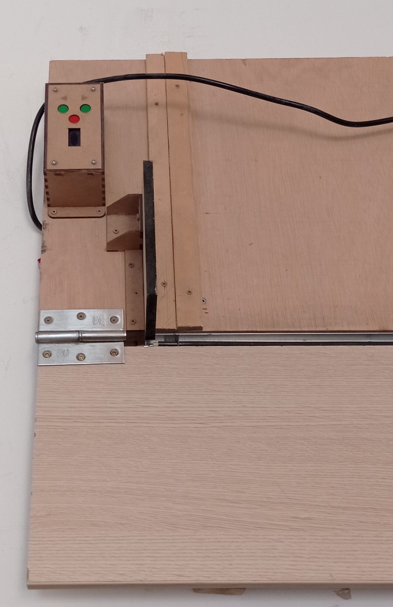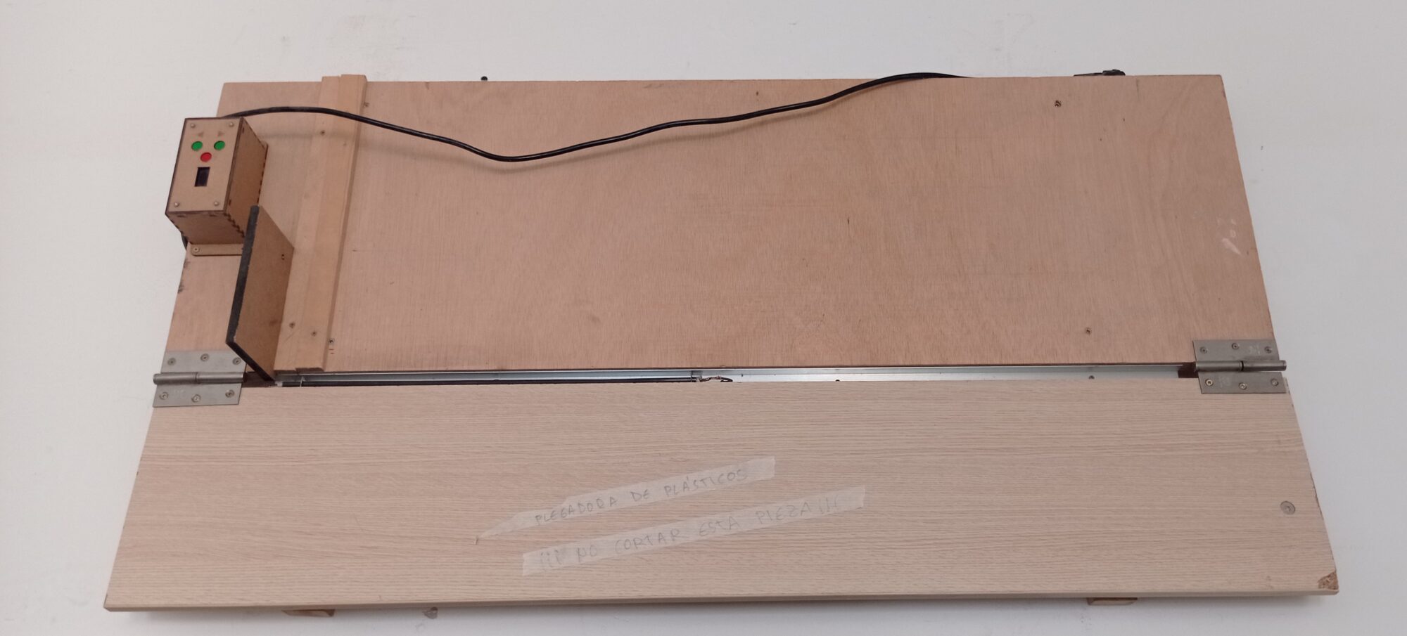 Plegadora realizada a mano en madera de contrachapado de 15 mm de grosor, compuesta por una resistencia de un brasero eléctrico.