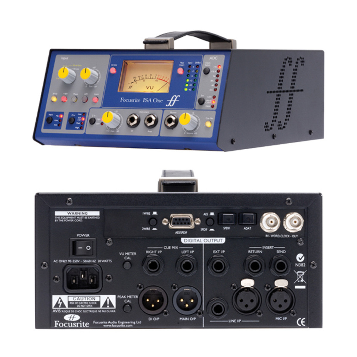 Medidores de pico LED calibrados en la posición de retén para 0dBFS = +22dBu, calibración es ajustable en el panel trasero para permitir que 0dBFS iguale +10dBu a +26dBu.