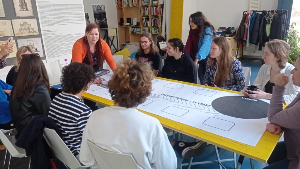 Además de las conferencias, no faltaron las actividades prácticas, con un total de cuatro talleres creativos diferentes para los estudiantes que visitaron Budapest. Olívia Kurucz , estudiante de doctorado en el Departamento de Planificación Urbana de la Universidad de Tecnología y Economía de Budapest, presentó buenos ejemplos de herramientas de participación comunitaria y gamificación, y los estudiantes también pudieron participar en un juego de mesa de participación que ella desarrolló.