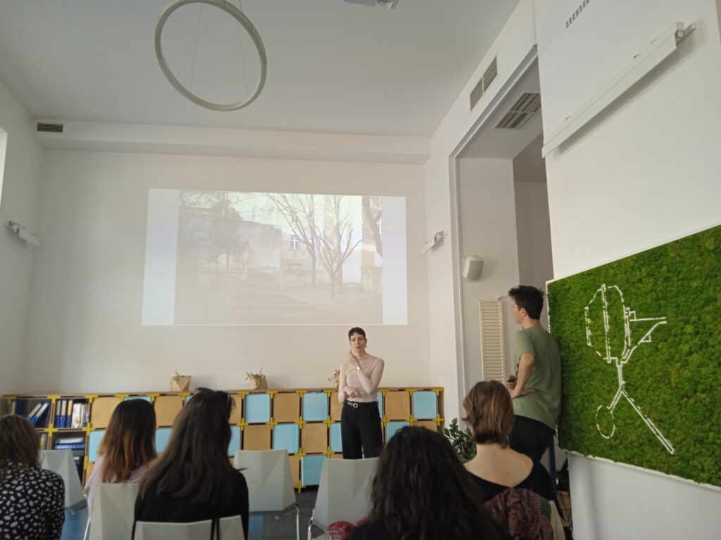 Durante una semana, los participantes del proyecto pudieron escuchar diferentes presentaciones sobre el tema de Levente Polyák ( Eutropian ) y Lilla Gerencsér y Dániel Győrfi ( Rév8 ), pero también pudieron aprender más sobre el trabajo de KÉK a través de una presentación de Timea Szőke , jefe de proyecto del equipo PLAY/ACT Budapest.