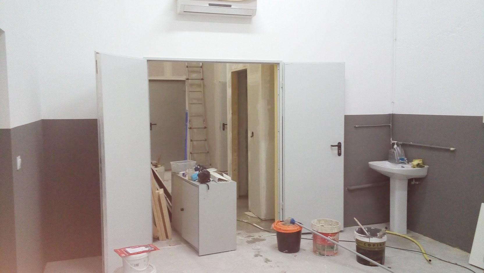 El puente acústico entre las salas se intentó mejorar dividiendo las láminas de la tarima que separa a las dos salas y colocando bajo la puerta un taco de madera con revestimiento de espuma. Las puertas se mejoraron levemente colocando espuma adhesiva en sus bordes. Puede verse todo en la galería.