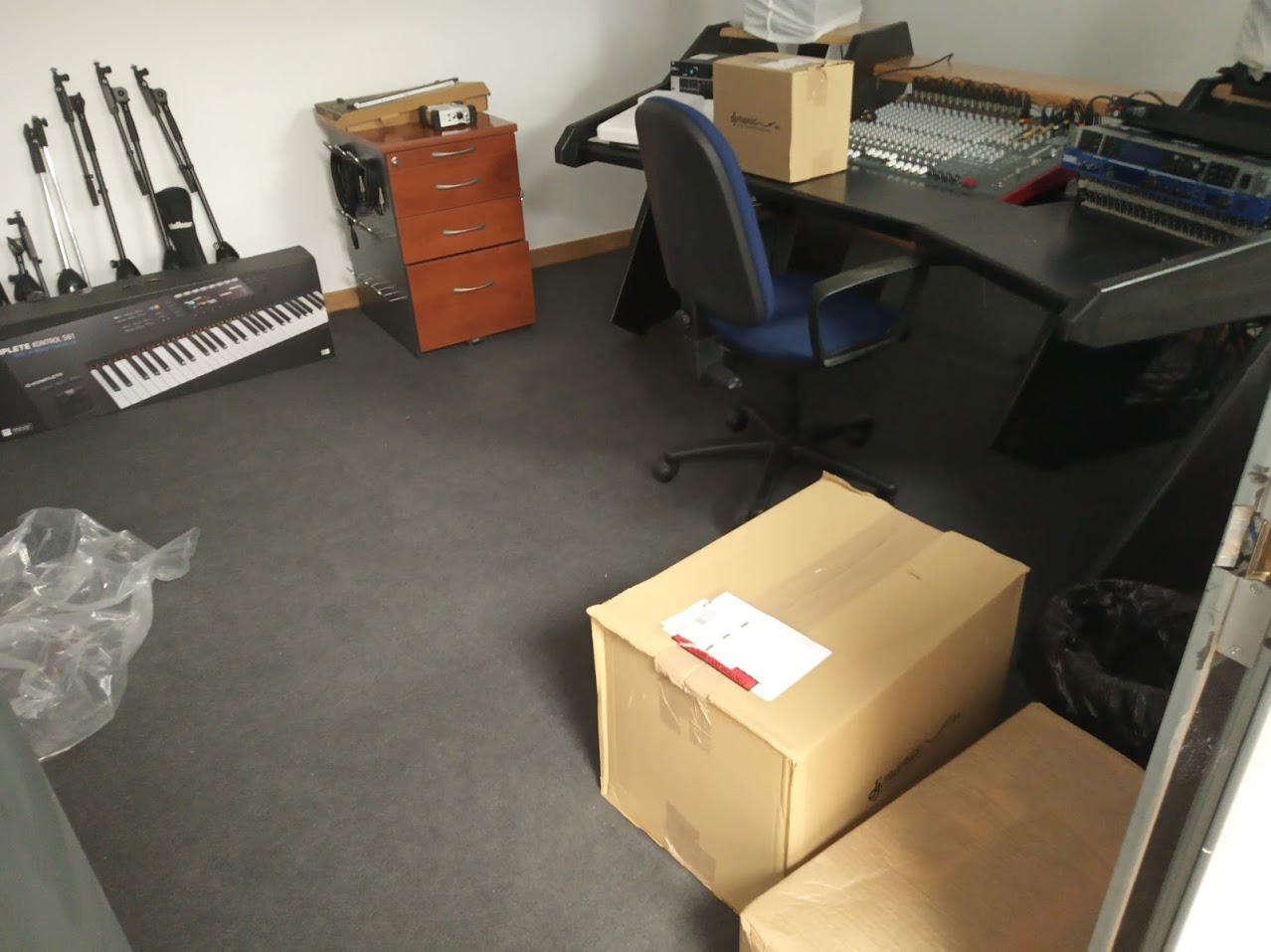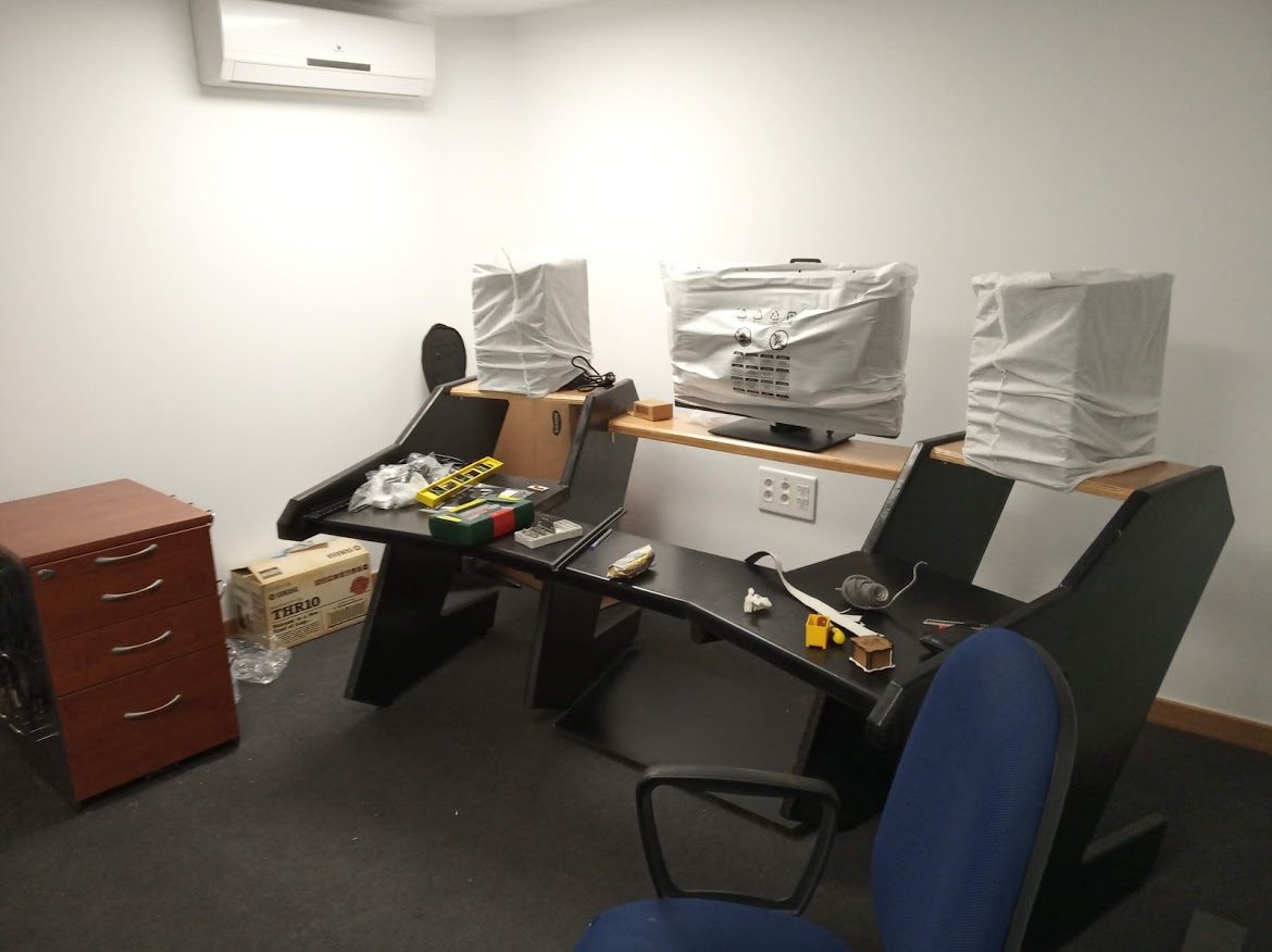 La definición de los equipos del estudio y su conexionado la realizó Ivan Carmona Andrada, y está hecha con muy buen criterio para tener “un poco de todo y de buena calidad“. Y sacar todo el máximo partido de los equipos a través de una conexión inteligente. Puede verse en la galería la llegada de los aparatos y la colocación de los primeros de ellos.