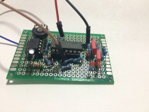 Montamos el circuito en una placa de desarrollo y lo probamos un generador de funciones y osciloscopio.