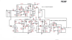 Como hemos comprobado en la medida del amplificador, el canal Fender tiene mayor ganancia y menor distorsión que el Marshall. Debemos tener en cuenta que la etapa de potencia que de nuestro amplificador está diseñada para el preamplificador Marshall, por tanto, nuestro amplificador jamás sonará igual que un amplificador Fender.