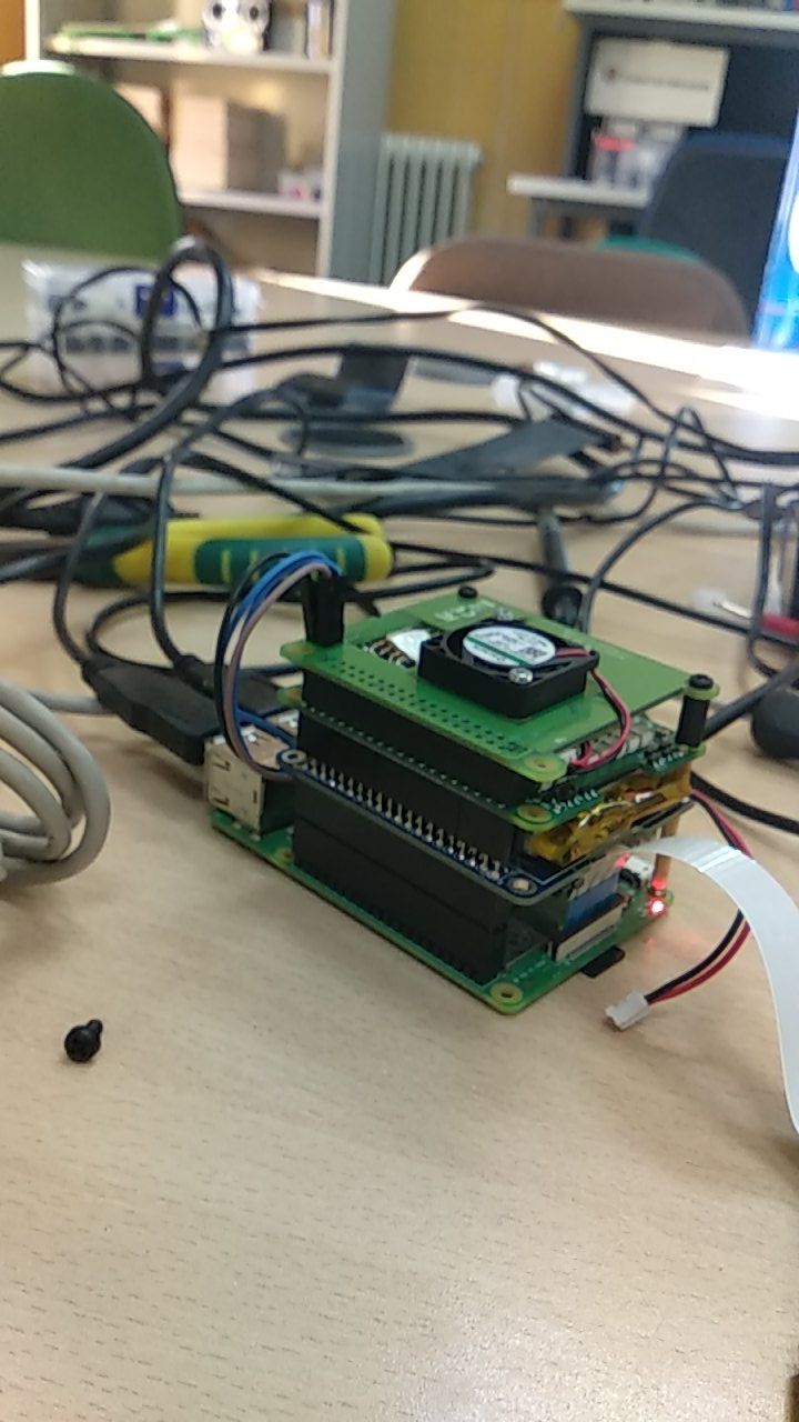 Como el globo estuvo fijo, la comunicación y la alimentación se realizaron a través de un cable de ethernet conectado a una RaspberryPi utilizando PoE y este escudo. Para poder medir la altura, la temperatura y la humedad utilizamos este práctico escudo. También está la opción de poner Sistema de Alimentación Ininterrumpida, como este, que funciona muy bien.