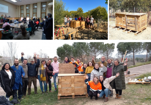 - Por último se han construido estructuras cerradas de madera para realizar compost orgánico con restos biológicos, dentro del proyecto europeo Erasmus+ ESCUTA. Estas composteras serán sensorizadas para medir su temperatura en varios puntos, la humedad en el interior, y el peso de materia orgánica introducida en cada toma. Hasta octubre de 2022 se ha construído una pareja junto al invernadero de la Facultad de Educación en Cáceres y se ha comenzado la construcción de tres composteras más y un almacén de residuo seco dentro del Parque Arroyo de Cuartillo, junto a la EPCC.