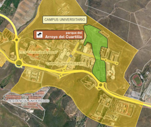 Estamos actuando sobre el parque más cercano a la Escuela Politécnica de Cáceres, el Parque de Arroyo de Cuartillo. Queremos utilizar las tecnologías y arquitecturas disponibles para mejorar y visibilizar una zona con alto valor ecológico.