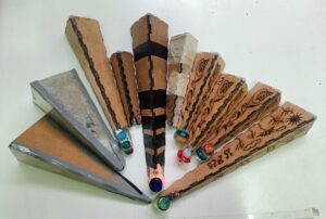 Los materiales básicos del proyecto son planchas de dm finas (3mm) y espejos, también he utilizado metacrilato para la ventanita por donde se mira y luego canicas, piedras translucidas o resina epoxi para que entre la luz.