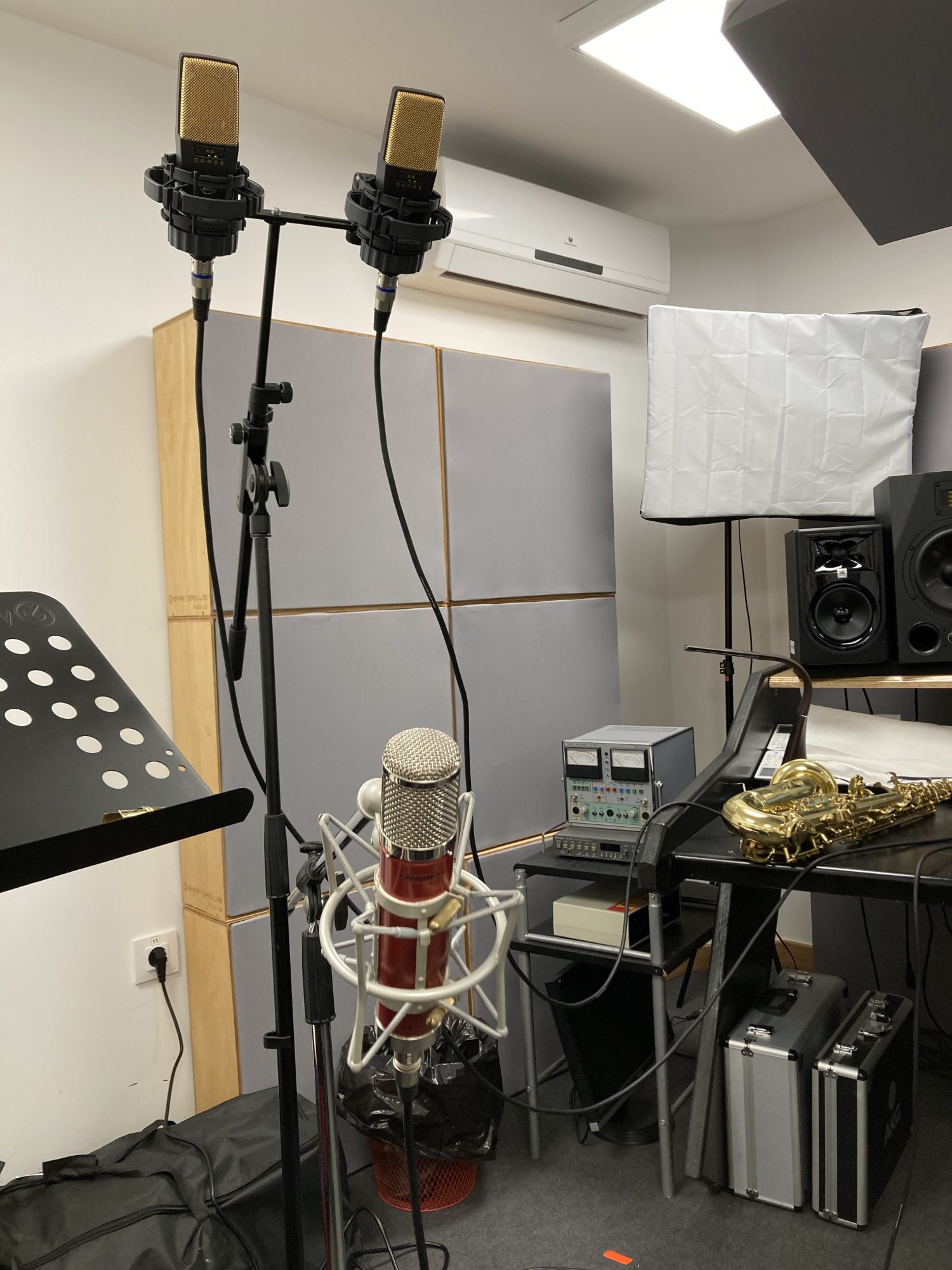 La intención de utilizar tres micrófonos fue obtener un sonido cercano con el Avantone, y un sonido de sala con la pareja de AKG, pero finalmente el sonido de sala conseguido no fue de mi agrado, por lo que únicamente me quedé con la pista del micrófono cercano.