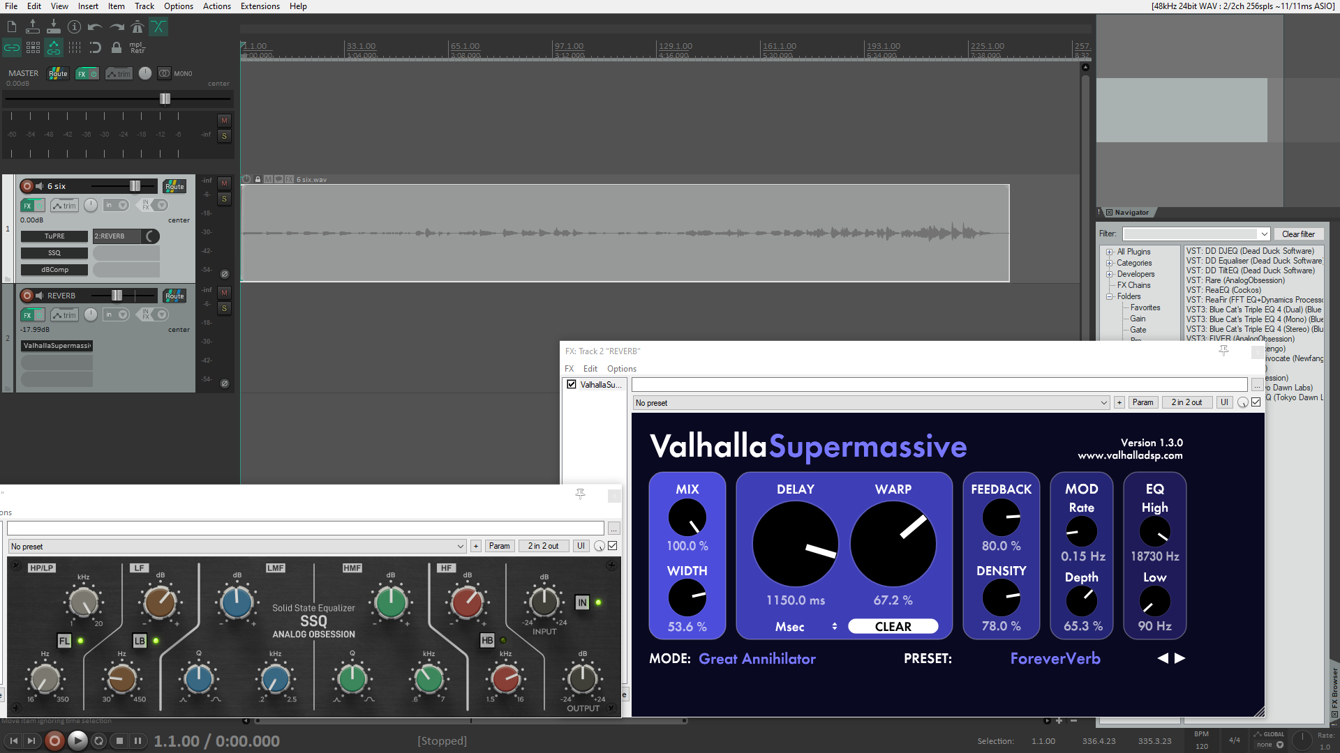 Para el proceso de mezcla y máster he usado plugins gratuitos de Analog Obsession (SSQ, TUPRE, dbCOMP; Voxengo (SPAN, Marvel GEQ), Alex Hilton (A1 Stereo Control), D16 (Frontier limiter), Youlean Lodness Meter 2,etc.