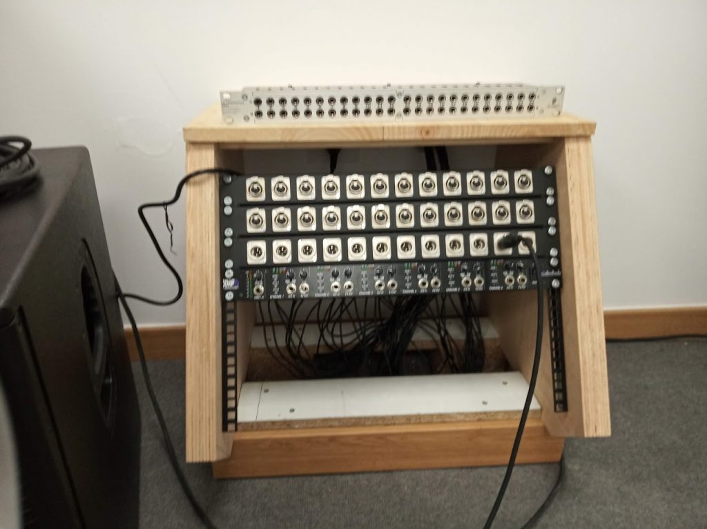 Proyecto de mueble a medida para alojar equipamientos con formato rack de 19″. Diseñado para nuestra sala de grabación. Fabricado completamente reutilizando materiales.
